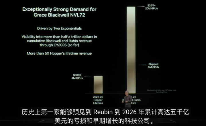 我认为,在Blackwell以及Rubin早期增长态势上,2026年我们很可能是历史上首家能够看到5000亿美元业务规模的公司。正如你所知,2025年尚未结束,2026年也尚未开始。这就是账面上的业务量,迄今为止已达半万亿美元。
